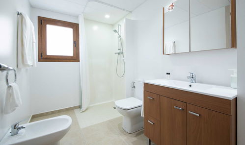 El baño esta equipado con lavamanos de 80 con espejo tipo camerino, bidé, water, ducha de obra a ras de suelo, adaptándose a las nuevas normativas para gente de la tercera edad o parejas que se quieran duchar juntos, ;). Dispone de un dosificador con jabón de manos, Gel/Champú, acondicionador, 3 rollos de papel higiénico y toallas para las personas que se vayan a hospedar, tiene una ventana con luz y ventilación natural.